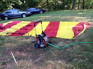 I was working to pressure wash our tents to prepare them for being water-sealed again.
